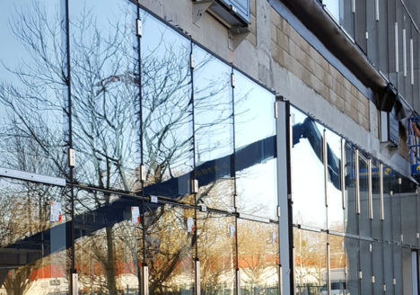 Pose du vitrage clair. Construction d’un bâtiment R+4 à usage d’enseignement. Suite à son installation à Nanterre en 2010, le CESI – école d’ingénieurs, engage l’extension de ses locaux existants (précédemment rénovés, agrandis…
