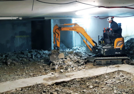 Démolition du dallage du dernier sous-sol. Rénovation et extension du siège social d’Arts & Vie, à Paris 15e. Le projet prévoit la rénovation complète du bâtiment : curage, travaux de mise en sécurité,…